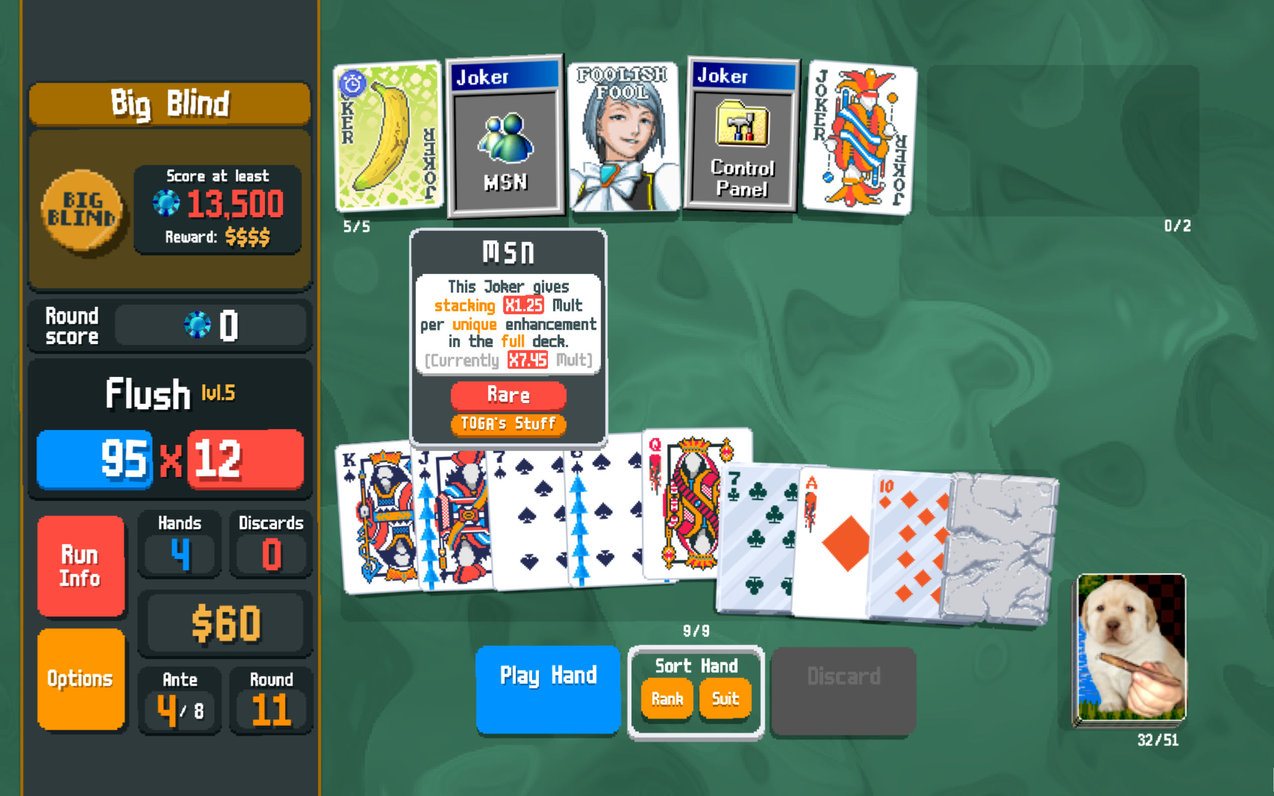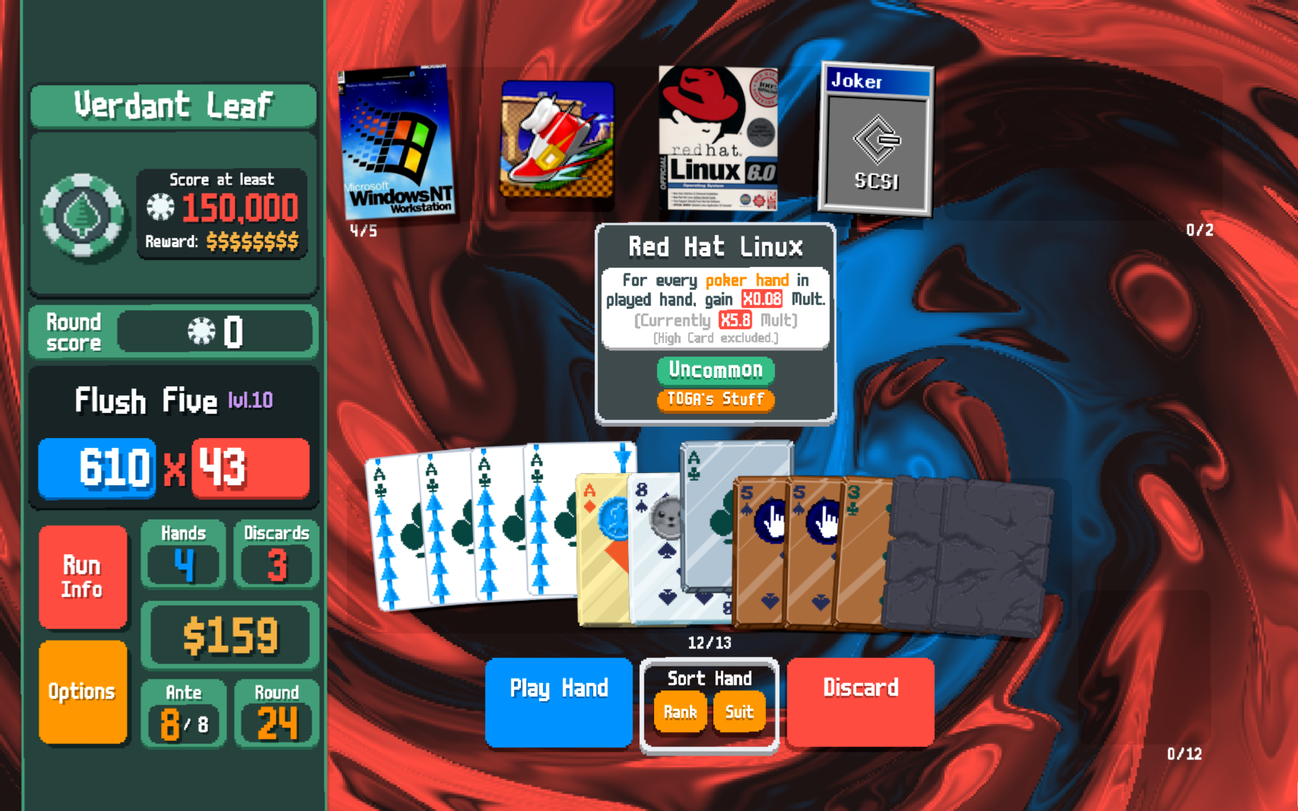 TOGA's Stuff is playful and toylike without sacrificing the challenge that keeps Balatro engaging in the long run. Many of the mod's effects are on the sillier side, often leaning into the retro-cyber aesthetic. Plus, there's a lot of room to explore builds that simply don't work in vanilla. Oftentimes, I find myself pivoting just to explore what a particular build can make happen.