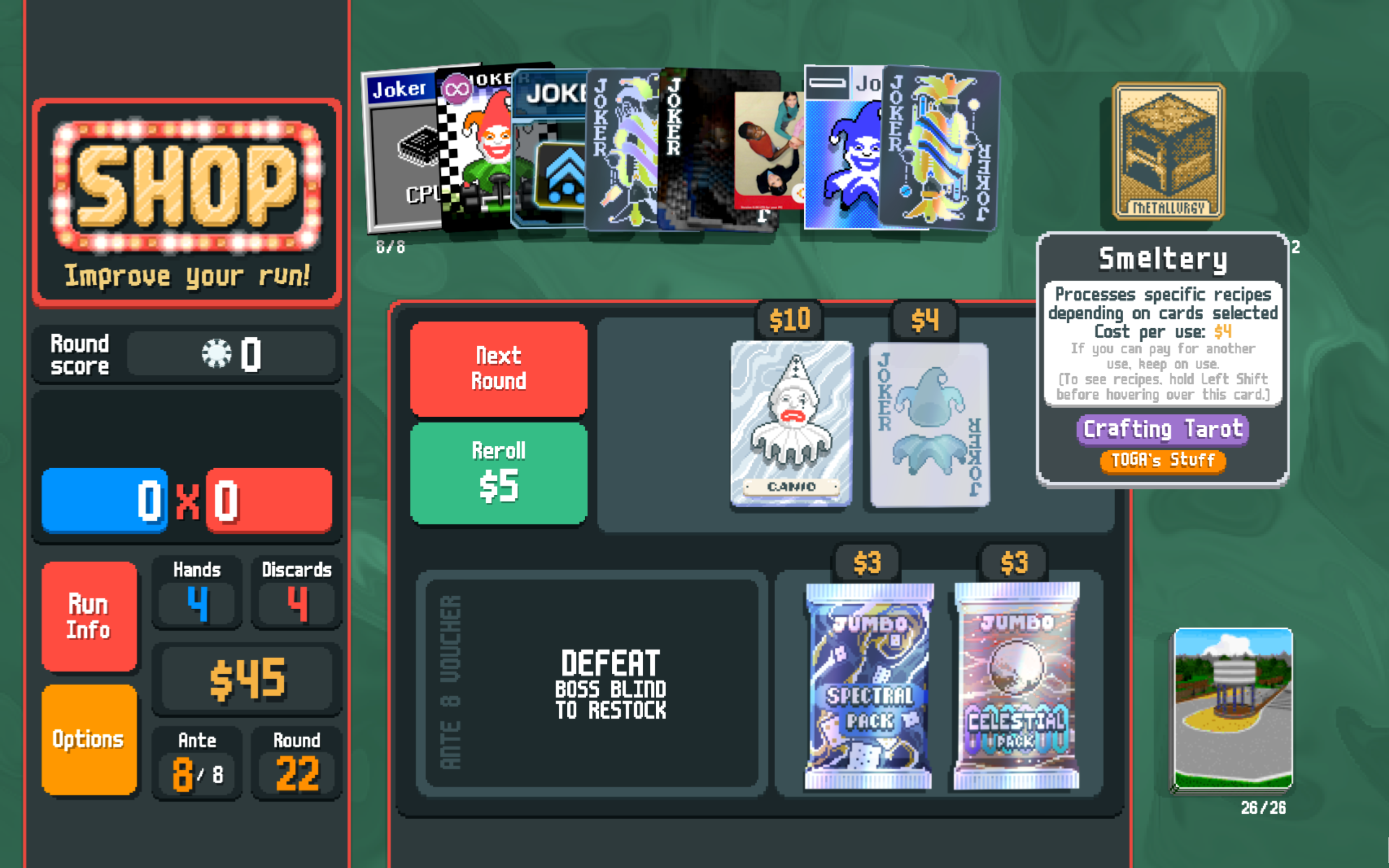Also of note, TOGA's Stuff comes with a powerful configuration menu built-in. Think the sillier Jokers are too gimmicky? I might disagree, but you're free to customize an experience that's fun for you. You can also tune the power level of the mod up or down to fit your personal tastes.